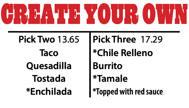 *Top any fajita plate with cheese, add $1.84. Take Out Orders .75¢ extra